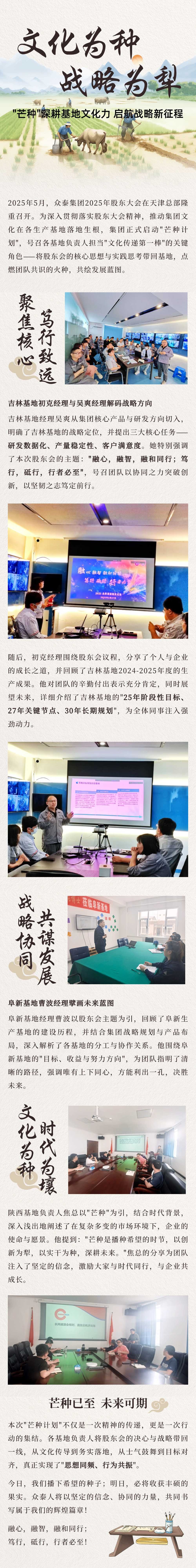 5月,為深入貫徹落實股東大會精神,推動集團文化在各生產(chǎn)基地落地生根,集團正式啟動"芒種計劃",號召各基地負(fù)責(zé)人擔(dān)當(dāng)